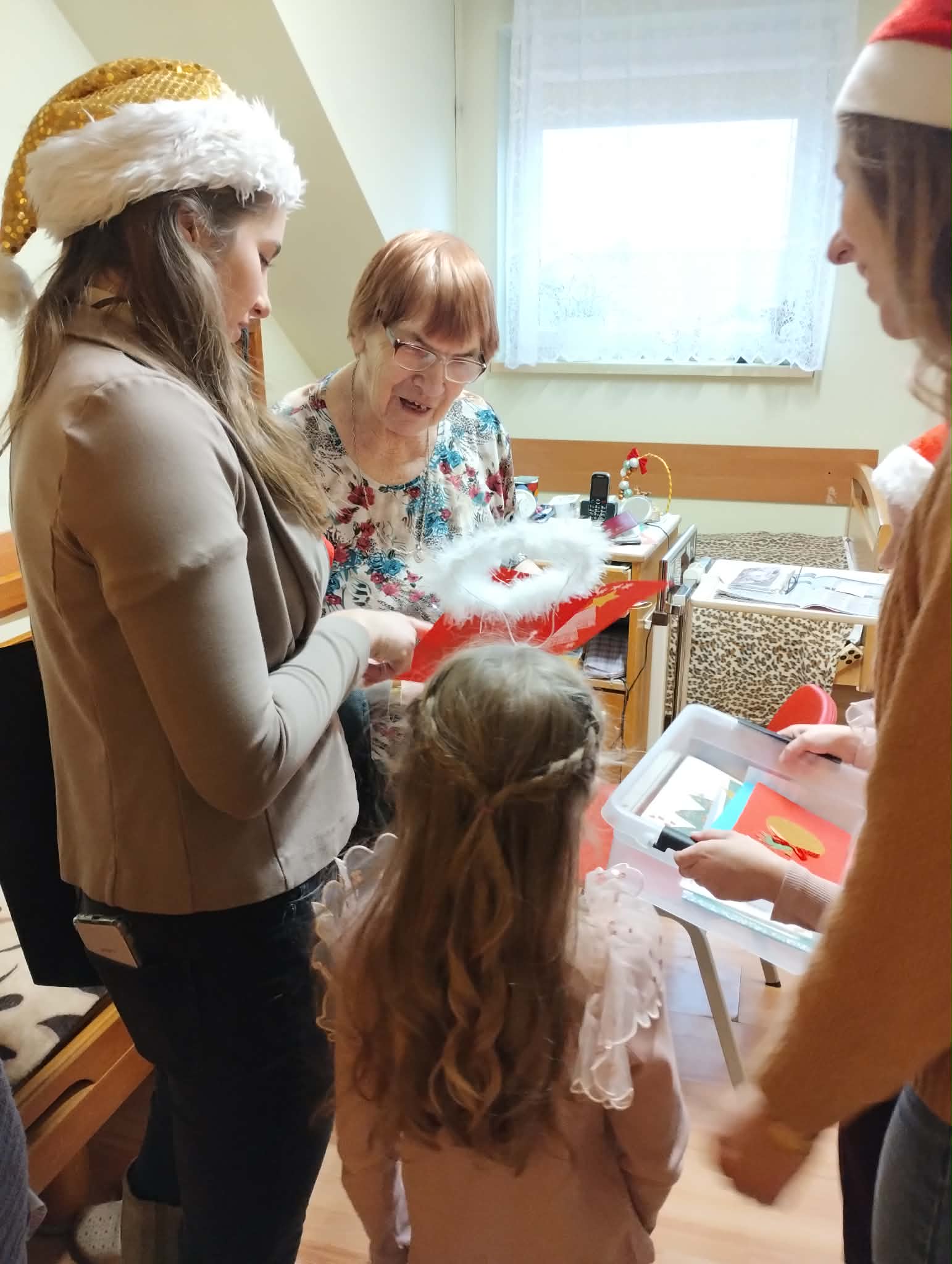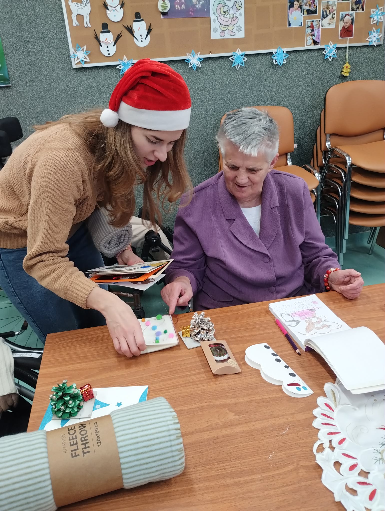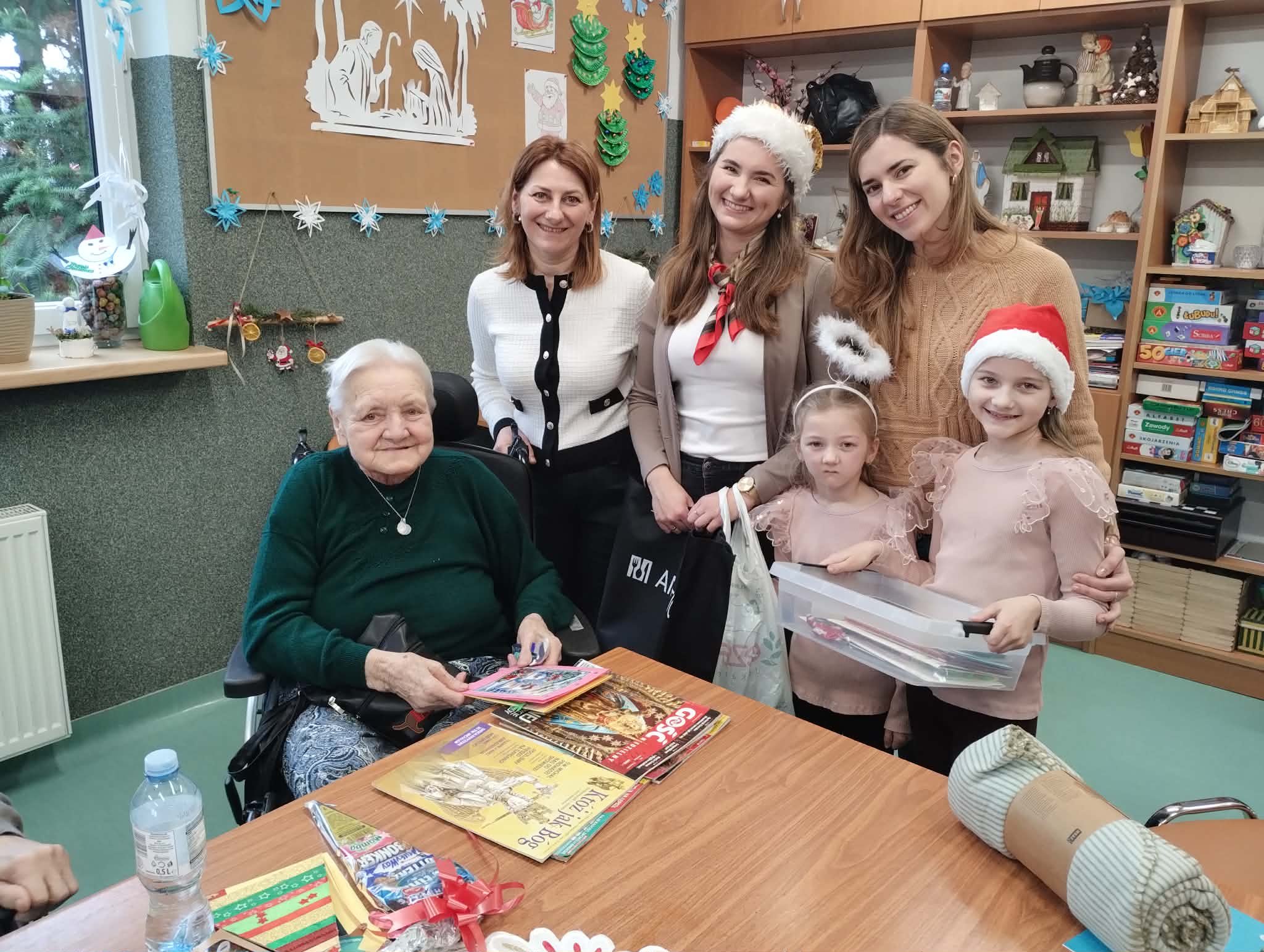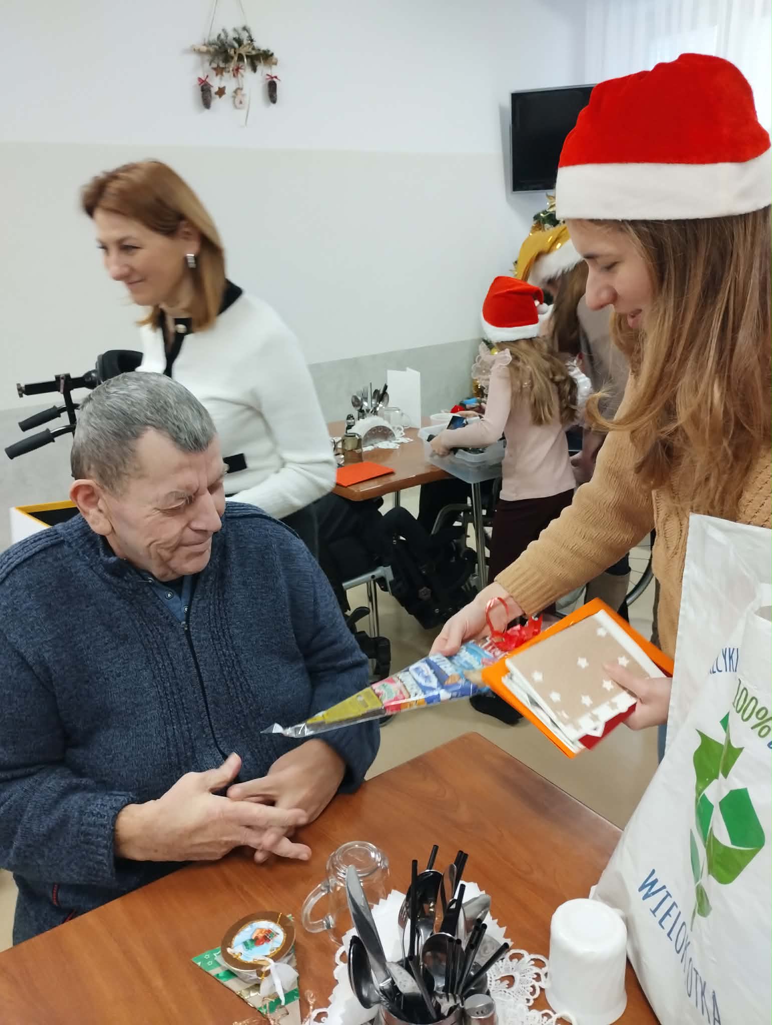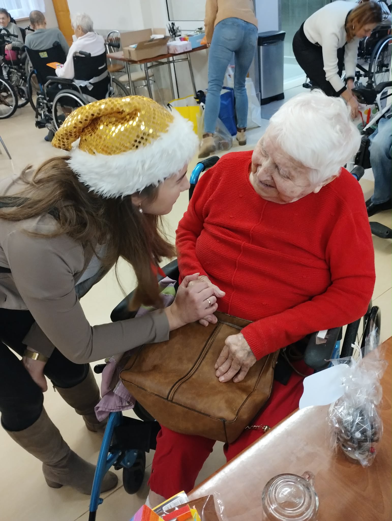 W dniu 23 grudnia 2025 zawitała do mieszkańców DPJ najbardziej im znana wolontariuszka –  pani Małgorzata Kochan wraz z  siostrą Klaudią i jej dziećmi oraz  ich ciocią, „obsypując” seniorów rozmaitymi prezentami od smakołyków począwszy a na materiałach do terapii  zajęciowej skończywszy.