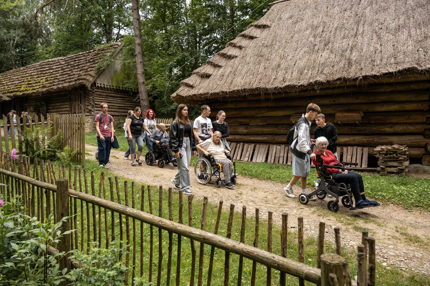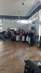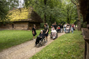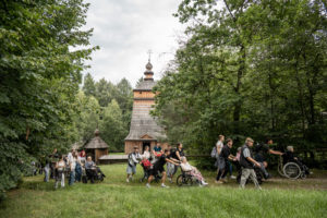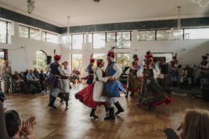Za nami spotkanie organizacyjno-zapoznawcze oraz pierwsze warsztaty, podczas których młodzi członkowie zespołu zaprezentowali się seniorom w pięknych strojach folkowych. Mieszkańcy Domu Pogodnej Jesieni w Zakliczynie wspólnie z członkami zespołu folklorystycznego Gwoździec i wolontariuszami ze Szkolnego Koła Wolontariatu działającego przy Szkole Podstawowej w Zakliczynie wzięli także udział w wycieczce, podczas której odwiedzili Sądecki Park Etnograficzny w Nowym Sączu. Wszystkich zachwyciło piękno zabytkowej architektury, a spacer po skansenie ożywił wspomnienia i stał się okazją do dyskusji o dawnym życiu na wsi, zwyczajach i kulturze wsi. Wycieczka stała się też świetną okazją do integracji uczestników. Wszyscy opiekunowie byli pod wrażeniem zaangażowania młodzieży w pomoc osobom niepełnosprawnymi, ich empatii i życzliwości. Na koniec wycieczki uczestnicy zjedli wspólny posiłek w Karczmie na terenie Miasteczka Galicyjskiego i wykonali pamiątkowe zdjęcie.