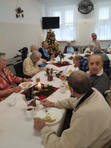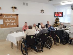 Jak co roku 24 grudnia 2025 w serdecznej, rodzinnej atmosferze w Domu Pogodnej Jesieni odbyła się tradycyjna Wigilia. Niewielka część osób spędziła Wigilię i Święta w gronie swoich rodzin, jednak zdecydowana większość uczestniczyła w uroczystej wieczerzy w DPJ.