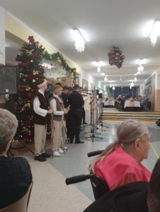 W następnej kolejności był występ w wykonaniu młodzieży ZSP z fragmentami Jasełek oraz występ Parafialnego Męskiego Chóru z Olszyn pod kierownictwem pana organisty Wojciecha Wojtasa z kapelą.