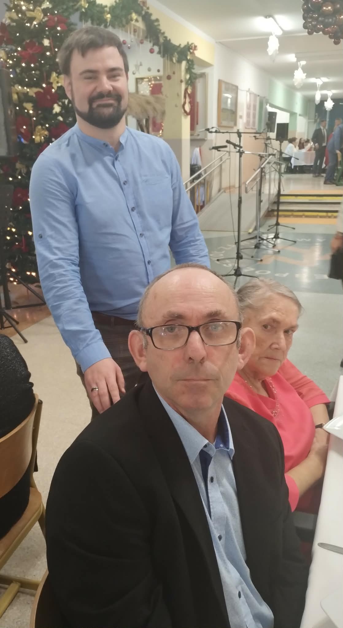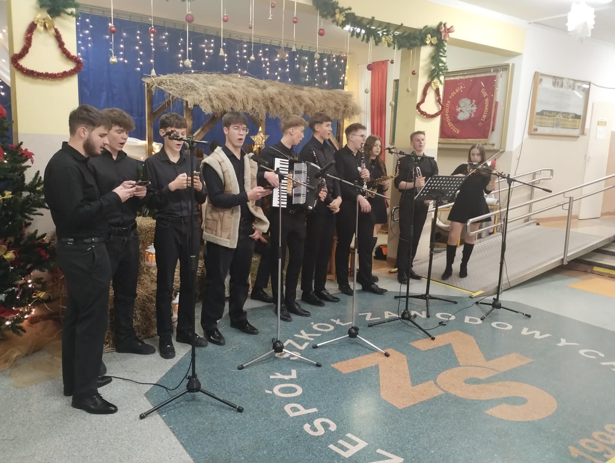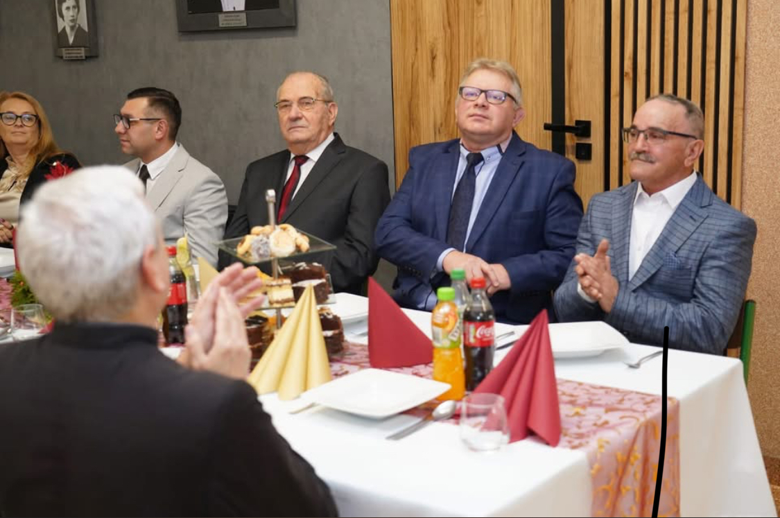 Po powitaniu wszystkich przez wicedyrektora Szkoły pana Jacka Świderskiego głos zabrali radni Powiatu Tarnowskiego Irena Kusion i Józefa Wojtas oraz burmistrz Miasta i Gminy Zakliczyn Dawid Chrobak, którzy pogratulowali gospodarzom wspaniałej uroczystości i życzyli wszystkim zdrowych świąt Bożego Narodzenia i szczęśliwego Nowego 2026 roku.
